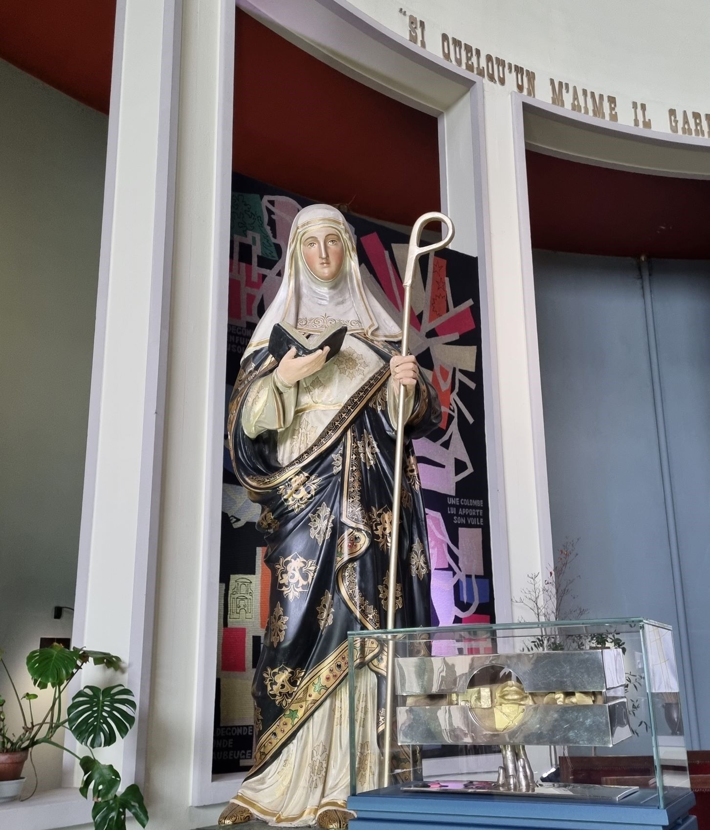 Hl. Aldegonde mit Äbtissin-Stab, Heiliger Schrift & Reliquiar in der Kirche St. Pierre St. Paul in Maubeuge