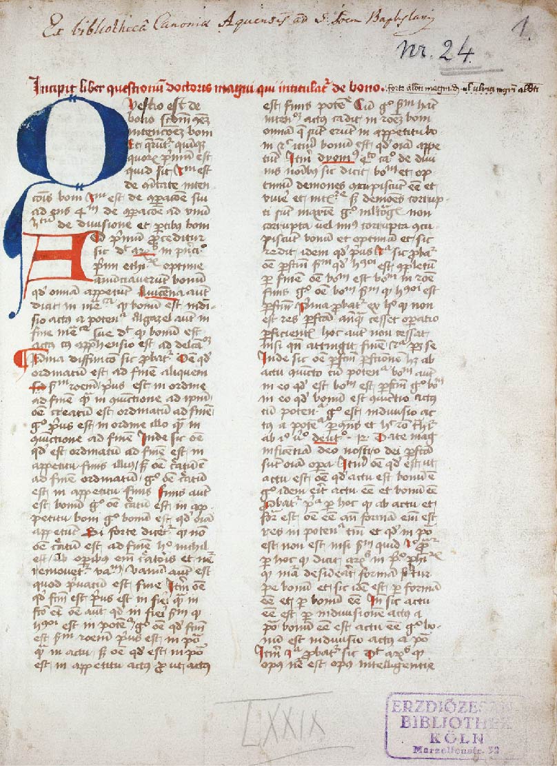 Beginn seiner Abhandlung 'Über das Gute' - 'De Bono' -