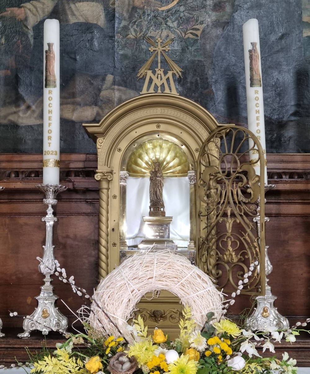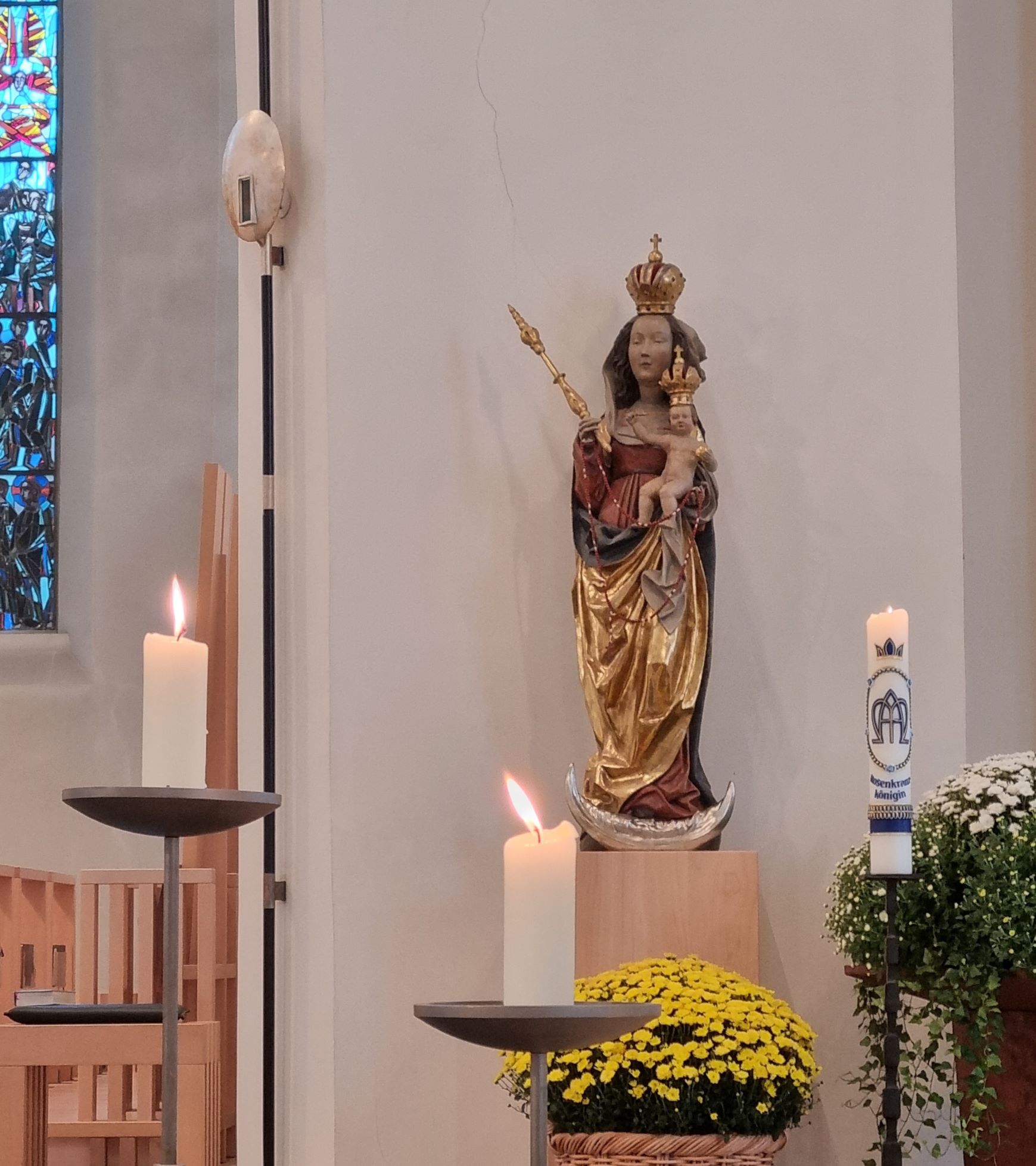 Das Gnadenbild zeigt die gekrönte Muttergottes mit dem Jesus-Kind (kleine Statuette)