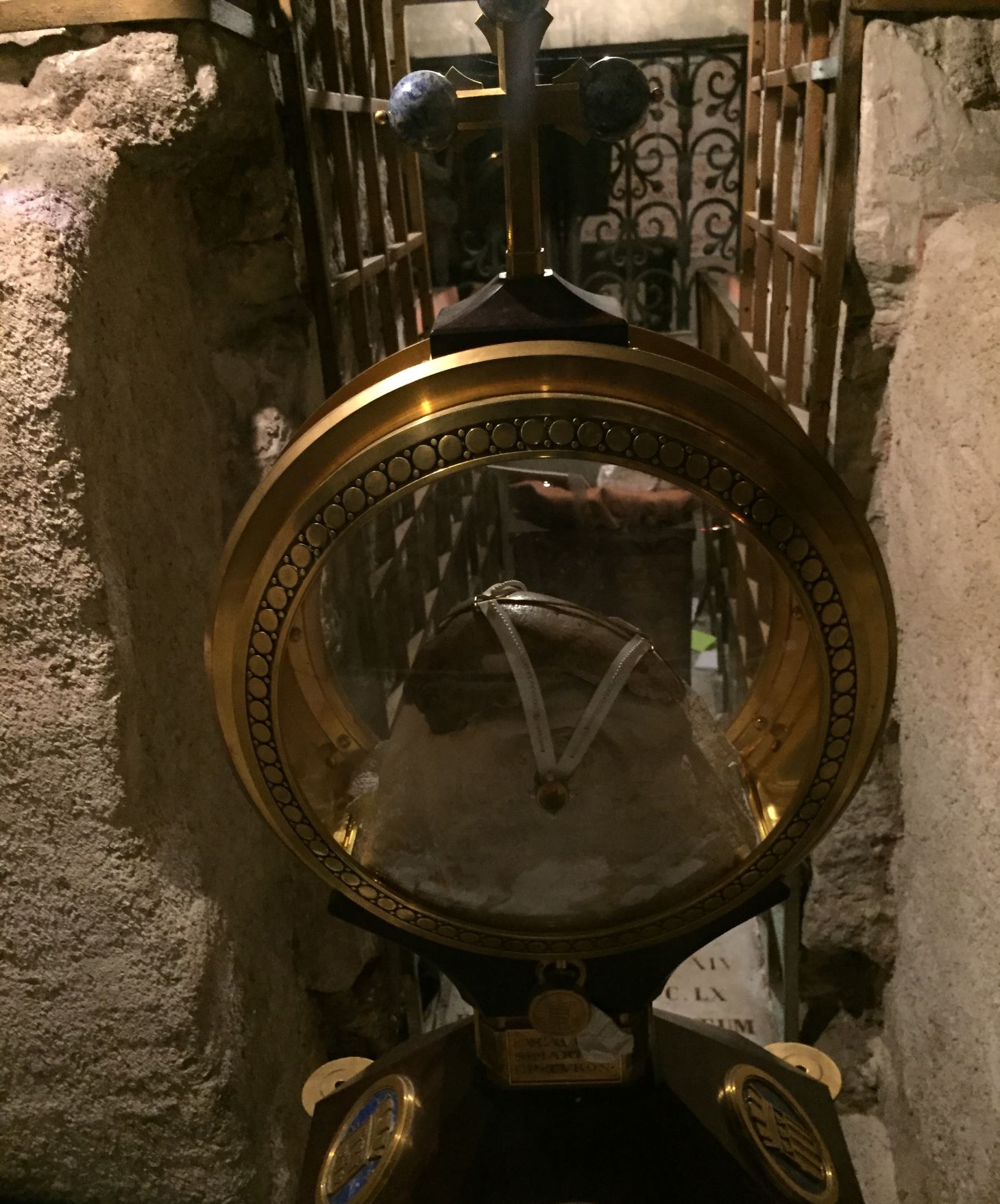 Schädelreliquie des Heiligen Martin in der Krypta der Basilika Saint-Martin in Tours