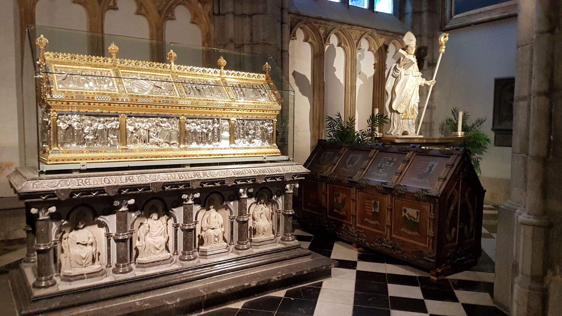 Reliquiare und Statue des Heiligen Lamberts in der Kathedrale von Lüttich (Belgien)