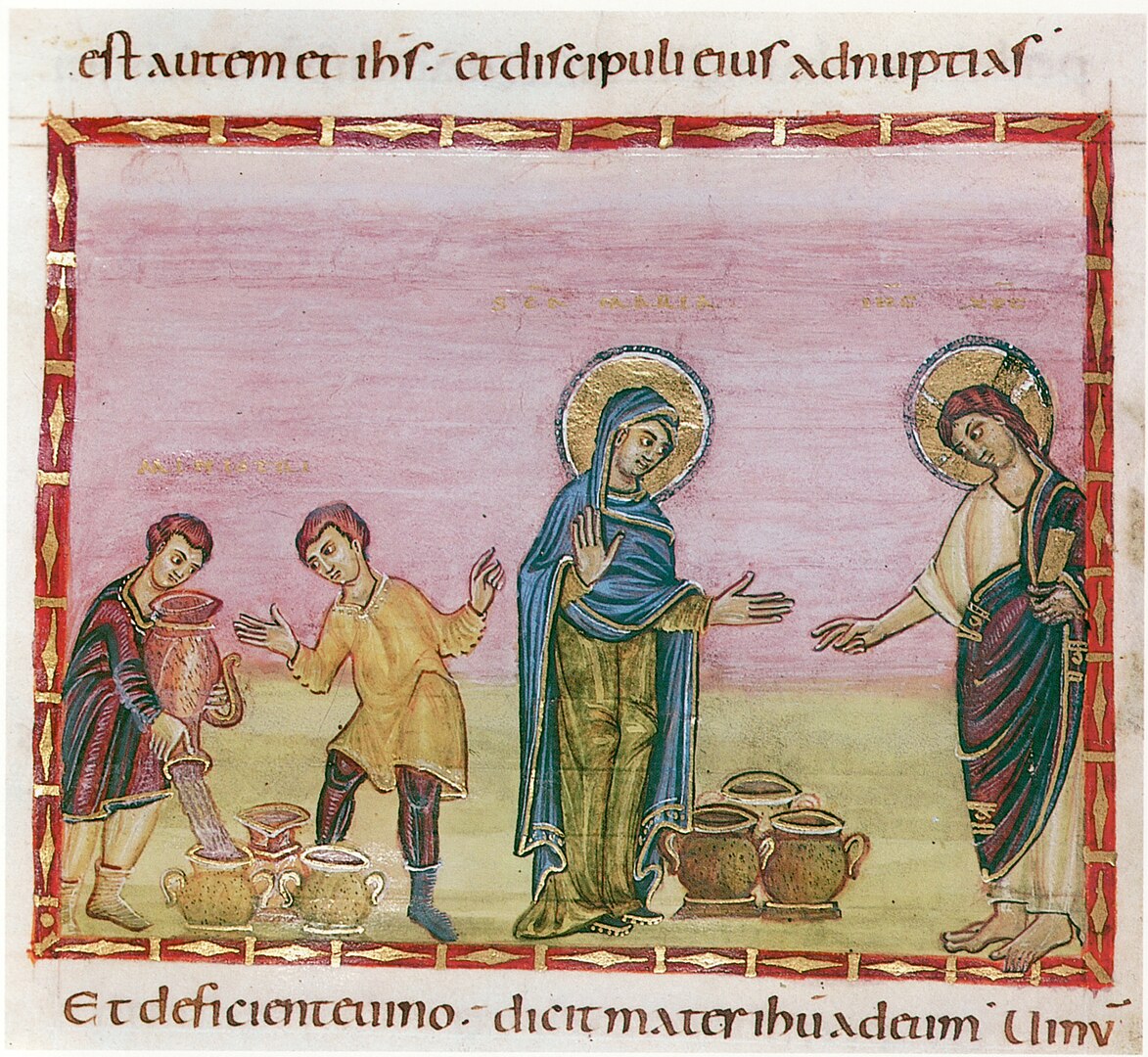 Weinwunder zu Kana | Egbert-Codex | Bi. Egbert | 10. Jhd. Trier | Ottonische Buchmalerei | Foto: wikipedia